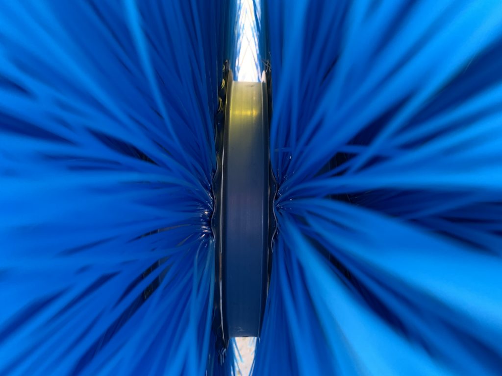 Convoluted / waved segment brushes from new to old have an even brushing ability, unlike the flat which, as they wear leave lines and grooves whilst sweeping.
